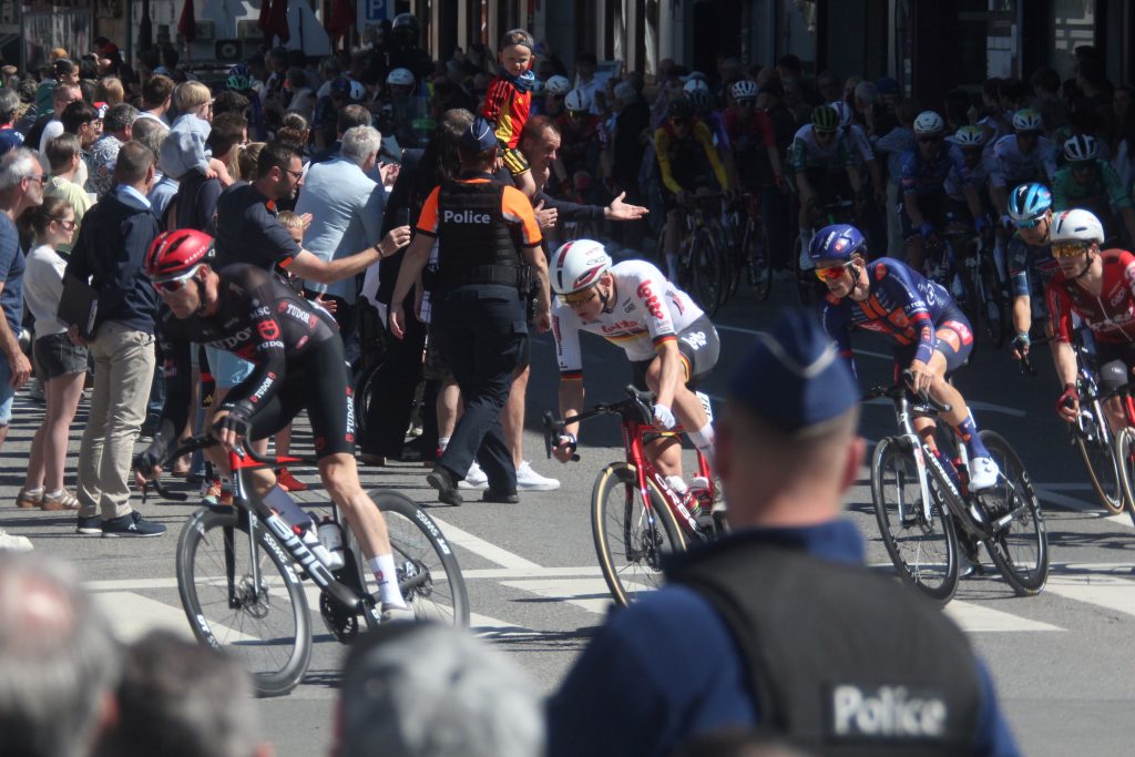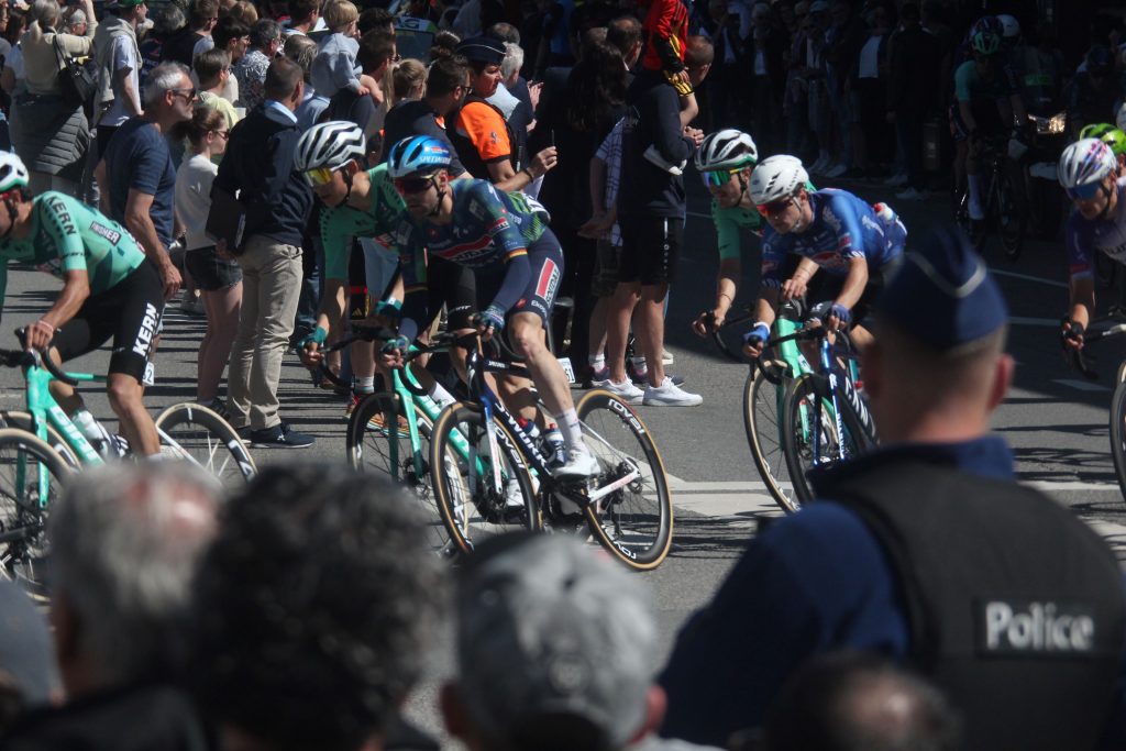 Schon in der Anfangsphase prägten Stürze und Tempowechsel das Rennen. Ein Massensturz im hinteren Feld sorgte dafür, dass sich eine ungewöhnlich große Spitzengruppe bildete, die zeitweise mehr als vier Minuten Vorsprung herausfuhr. Unter den Ausreißern befand sich auch Remco Evenepoel, der früh Initiative zeigte und das Rennen unruhig machte.